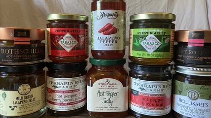 Stonewall Kitchen makes a wide range of food products, including salsas, dressings, syrups, and chutneys. The company also makes a lot of different jams, jellies, and marmalades. A few of Stonewall Kitchen's spreads feature hot chili peppers, like its Ghost Pepper Jelly and Apple Jalapeno Jelly. Stonewall Kitchen's Hot Pepper Jelly is another popular product from the company. This hot pepper jelly is on the mild end of the heat spectrum. This batch is made with ingredients such as pure cane sugar, onions, roasted red bell peppers, jalapenos, vinegar, and cayenne peppers.