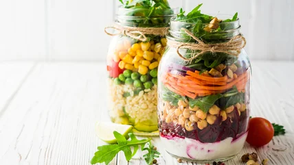 You should position heartier, more robust veggies next to the dressing because they can stand up to that vinaigrette or creamy sauce while also preventing the more fragile salad ingredients from touching the dressing too soon. Follow this setup and meal prep will be easy now and still delicious later.