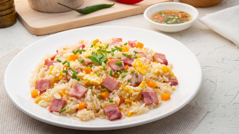 Fried rice can be a good recipe choice if you have several types of lunch meat that you're trying to use up. If you think about the menu at a Chinese restaurant, there is almost always a combination fried rice, a menu item that involves many different foods or meats. You can experiment with different combinations of ham, turkey, chicken, roast beef, salami, or even bologna when making your own fried rice recipe at home. We think you'll find that nearly every combination tastes pretty fabulous.