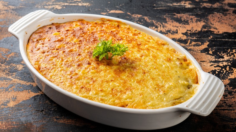 Traditional shepherd's pie features ground meat and vegetables topped with creamy mashed potatoes. After being prepared, the whole dish is baked in the oven, making the top of the mashed potatoes nice and crispy. Ground meat may be the traditional protein for this dish, but it isn't the only thing you can use when making shepherd's pie.