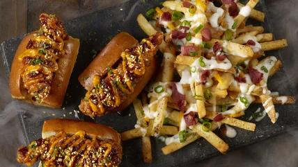 The new menu centers around those two bundled meals. The Blazin' Burger Bundle highlights a Whiskey-Glazed Blaze Burger piled high with toppings such as jalapeños, bacon, and cheddar before being finished off with two sauce-drenched ribs. If chicken is more your style, there's the Blazed & Glazed Chicken Slammer Bundle, which highlights a trio of Whiskey-Glaze-Blaze-tossed chicken fingers served on aioli-adorned mini buns. To take things up a level, both are served with a side of not just fries, but cheese fries, for extra decadence.