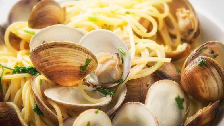 Shellfish is a bit understandable as a general rule because it can sometimes take an embarrassing amount of effort to pry open a mussel or crack a lobster claw — it's not an elegant process. Pasta, whether it's a verdant pesto sauce or a bright red marinara, can end up on the king's clothing and we wouldn't want that, either. The presence of potatoes on this no-fly list is somewhat confusing, though.