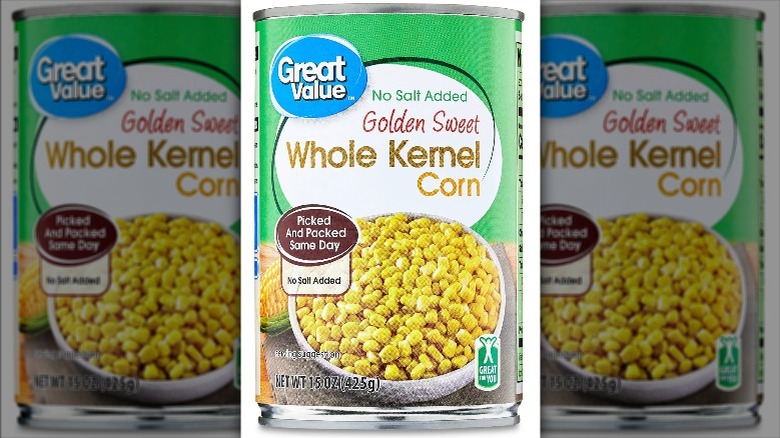 So we can understand why Walmart's own-brand offering, its Great Value No Salt Added Golden Sweet Whole Kernel Corn, might seem like a sensible choice — except for the fact that its quality is just not there. One key issue with this corn is that its kernels tend to be super-hard and brittle, as multiple reviews point out via Walmart. "Corn is hard and the kernels are big. [It] looks like they used cattle corn! The label they have shown is not the can you will receive!" one person said. They went on to conclude that even a one-star rating is too generous. Ouch.