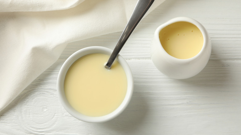 Anyone who bakes is probably already familiar with sweetened condensed milk because it's a common ingredient in many desserts and baked goods. It's a thick, syrupy liquid made from milk that has been pressure cooked until about 60% of the water has evaporated out. Once this occurs, the milk is sweetened with sugar and canned for use in different recipes. Contrary to what its name suggests, all condensed milk is sweetened condensed milk, and there's no such thing as unsweetened condensed milk. Condensed milk without the added sugar is actually another product called evaporated milk.
