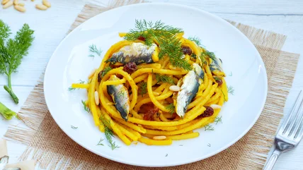 One option is to cook up some pasta con le sarde. In an interview with Insider, Chef Fabio Trabocchi recommends the dish as an elevated answer to shrimp scampi cravings, noting that it's a "true regional classic." The dish is made with bucatini and highlights both anchovies and sardines, as well as pine nuts, fennel, and — of course — saffron. The resulting plate is one rich in savory flavors punctuated by the delicate, earthy notes of the spice.
