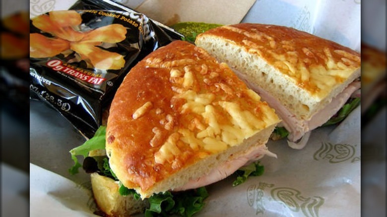 You'll always find turkey as an option when you're looking into healthy menu items. Panera's Sierra Turkey Sandwich was a turkey lover's paradise and one of the most popular discontinued items among the brand's most loyal customers. With this sandwich, customers were treated to smoked turkey breast, a mishmash of field greens, Asiago cheese focaccia, red onions, and zesty chipotle mayo. This was a hot sandwich option that mixed nutritional value with taste, and customers loved combining it with their favorite chips or an apple.