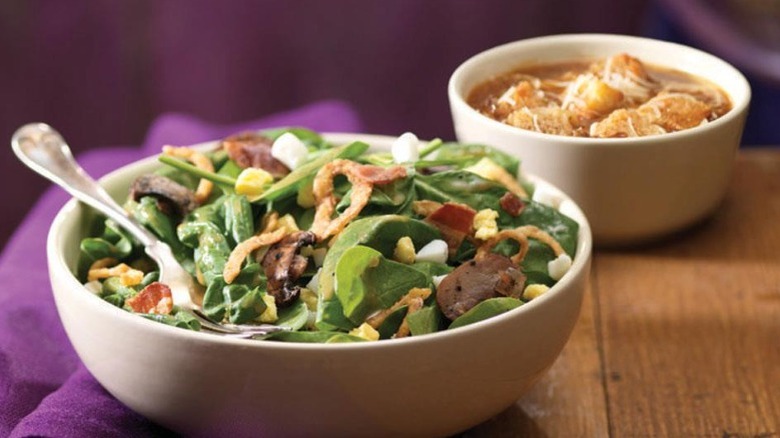 People today are looking for nutritious and protein-rich meals, and Panera's Spinach Power Salad accommodated them. This menu item was great for lunchtime when you want to satiate your hunger with a sensible and nutritious meal. It's a salad that featured ingredients like fresh baby spinach, onions, applewood-smoked bacon, roasted mushrooms, and diced eggs. The salad also featured a healthy dousing of Vidalia onion vinaigrette dressing. The salad paired well with soup options, such as French onion, creamy tomato, and broccoli cheddar soup.