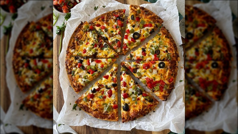 According to a Reddit thread discussing Mama Cozzi's thin-crust pizza, the original poster proclaimed the pie as "serviceable," and stated that they would buy it again thanks to the $2 price tag. This sentiment is mirrored by many of the commenters. Overall, people seem to be pleased with the pizza brand. However, many admit to making adjustments to the pies to enhance the flavor. As stated by one commenter, the addition of "sliced basil and red pepper flakes," elevates the frozen pizza to another level. Another recommends adding "extra cheese," as well as additional seasonings. Another person gets truly fancy by drizzling olive oil over the pie while also including black olives, pepper, and salt.