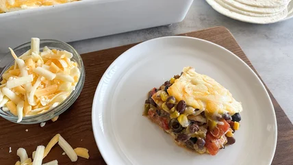 Recipe developer and registered dietitian nutritionist, Kristen Carli, MS, RD, brings us just that with her recipe for a Southwestern-style taco bake. "I often have this urge to casserole-ify every dinner I make — I think it stems from being a busy working parent," Carli says, adding that her favorite dinners don't necessarily follow the meat-and-two-sides formula. "I'd always rather have a one-pan dish that is made up of all the necessary macronutrients: protein, carbohydrates, and fat." In this case, the taco bake meets those requirements, with protein found in the beef and black beans; carbohydrates in the flour tortillas, corn, and black beans; and flavorful fat in the meat and cheese.