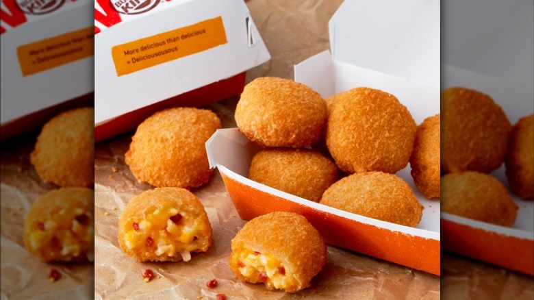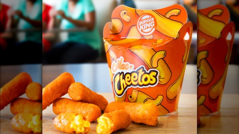 In yet another example of Burger King's willingness to go outside the box, the company released its Mac 'n Cheetos menu item in 2016. As the name suggests, it was a cross-promotion between Burger King and Cheetos. This menu option featured deep-fried macaroni and cheese sticks served in the noteworthy orange packaging that you get when you purchase a bag of Cheetos. It came with five Mac n' Cheetos cheese sticks, along with a ranch dipping sauce. They were deep-fried, similar to the cheese sticks that you would get when you order at a bar or restaurant.