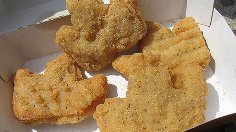 What's a king without a crown? That's the question that Burger King was hoping to answer with its unique take on chicken nuggets that came out in 2006. Rather than reinvent the wheel, this menu item was pretty straightforward. It took the same recipe that people love from the company's original chicken nuggets, and simply turned them into the shape of a king's crown. The chain marketed these white meat crown-shaped nuggets by saying that the crown shape made them perfect for dipping into barbecue, ranch, or your favorite sauce. These crown-shaped chicken nuggets had a decent run in the mid-2000s, before being discontinued in 2011.