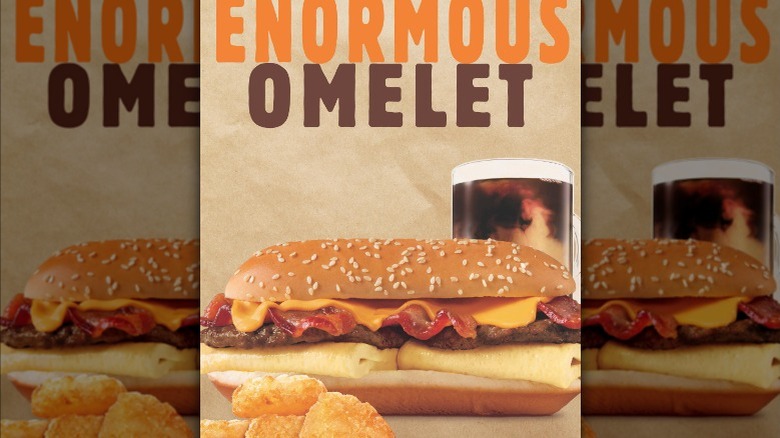 Burger King has also had a history of swinging for the fences with its breakfast items. One example, which lives on as a flop for the King, was the Enormous Omelet Sandwich. This was a breakfast menu item that had eggs cooked omelet style, cheese, sausage, and bacon on an extra-long sesame seed roll. It came out in 2005 and didn't do very well upon its release.