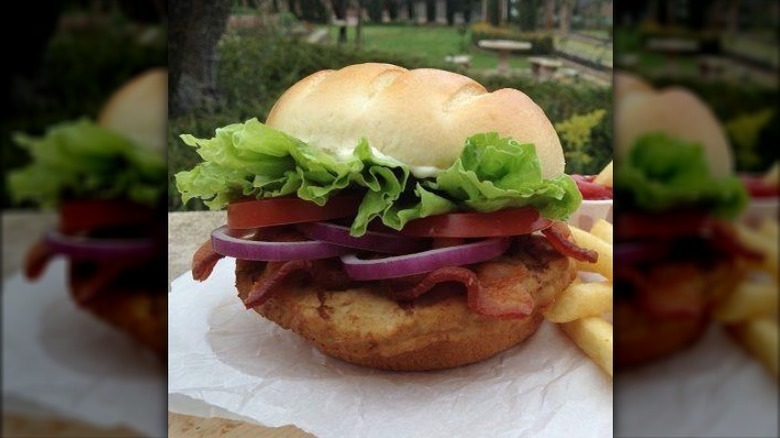 The Western Whopper is a burger that you might remember if you grew up in the '90s. The restaurant put a lot of advertising into the rollout, which featured plenty of cowboy and Western-themed commercials. In addition to the famous flame-broiled beef, the Western Whopper also included strips of crispy bacon and a dollop of Bullseye Barbecue sauce. The Western Whopper was brought back again for a short time in the 2000s and featured humorous commercials of burgers making people grow mustaches after eating them.