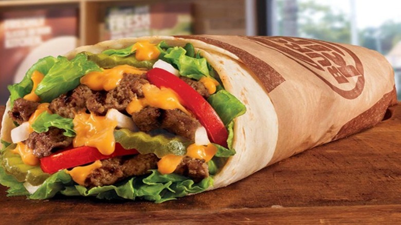 After some test runs in Pennsylvania, Burger King introduced the nation to the Whopperrito in the late summertime. Some people thought this menu item was a bit weird, but others found it surprisingly tasty. The burger got some social media buzz but was quickly discontinued three short months after its launch. In all, the Whopperito wasn't very well-received, which makes the chance of a comeback next to nil. Though an online petition for the Whopperito came and went, there's still hope for die-hard fans. True to the slogan "Have it your way," customers have reported that Burger King locations have allowed them to request their Whopper in a tortilla. The restaurant keeps tortillas in stock for its breakfast burrito. It may lack the queso sauce and the original Whopperito's kick, but it's the only way this discontinued menu item will live on for the foreseeable future.