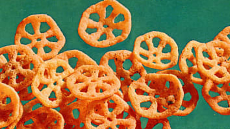 Throughout the 1960s, pizza experienced huge popularity growth across the United States, thanks in no small part to the rise of rapid delivery chains like Domino's. In 1968, a press release declaring pizza to be the flavor of the 1960s caught the eyes of General Mills. Wanting to capitalize on the trend, the company crafted Pizza Spins, crackers flavored with tomato, parmesan, pepper, and other spices typically found in pizza sauce. They were ostensibly shaped like pizza pies, but there was a little round point where the slices all intersected that made them look a lot more like wagon wheels than anything else.