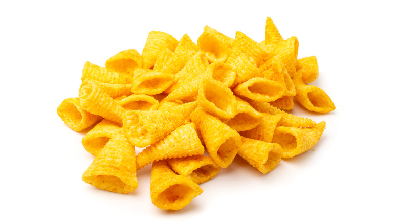 Pizza Spins was one of five snacks released by General Mills in the '60s, all of which were shaped like something else. Besides Pizza Spins, there were Whistles and Daisys, shaped like tubes and flowers, as well as Onyums, which were similar to Funyuns. However, the first object-shaped snack General Mills ever made is still around today: Bugles!
