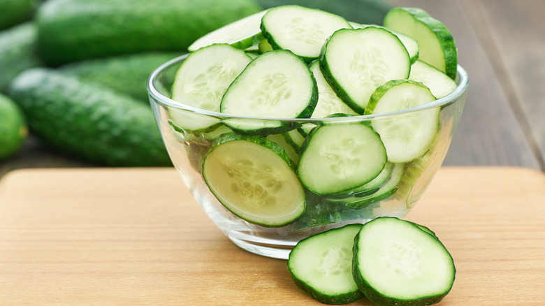 If you're trying to watch your salt intake and need another hack to reduce the water content in cucumbers, you can remove the cucumber seeds and gel-like center. This is where the cucumber holds a large quantity of its water. It's also a good alternative if you're short on time — as you can quickly scoop out the seeds and get going on your salad. However, it will not yield identical results, as the salting method targets the whole cucumber, not just the center. The next time you add cucumber to a salad, try the salt and drain trick and see how much your salad flavors are amplified.