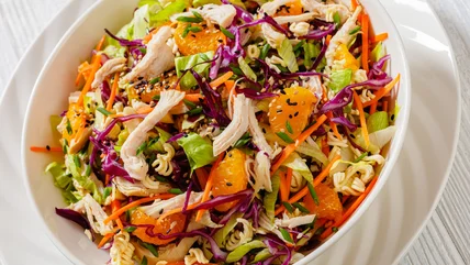 While the words "ramen noodle" and "salad" might not sound like they mix, this picnic side dish is a popular treat in the Midwest, where recipes and variations abound. Composed of crushed dry ramen noodles, shredded coleslaw mix, nuts, seeds, mandarin oranges, and a zippy dressing, the dish is a perfect open-and-dump recipe. It's easy and fast to make, and requires little actual cooking or preparation. You don't even have to cook the ramen noodles!