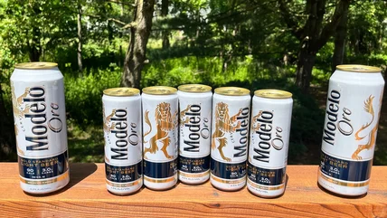 After conducting market research to determine what customers craved most, Grupo Modelo created a light, golden-colored lager with more depth of flavor. This new beer was test-marketed early in the year and the company's brand manager noted that 95% of the consumers who participated awarded it four out of five stars. The modern-looking Modelo Oro cans set the tone by proudly claiming to be the "Gold Standard Light Beer."