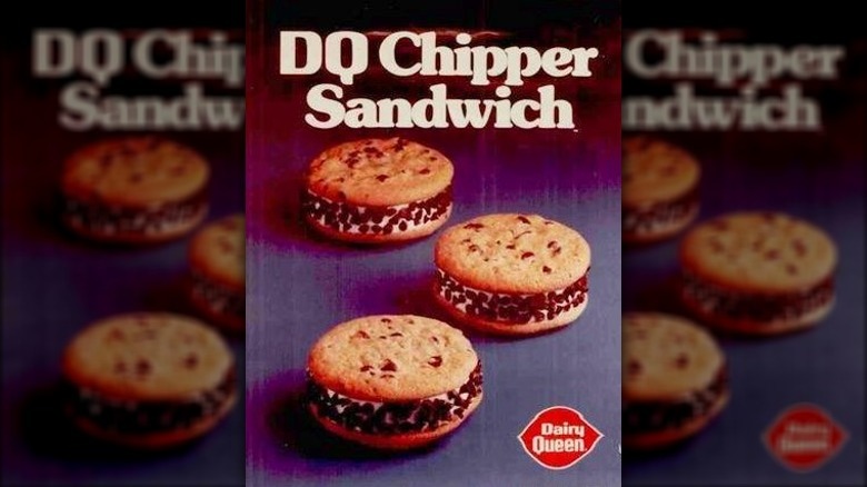 Surprisingly, the ice cream cookie sandwich has a delicious history that dates all the way back to 1928. Richard LaMotta popularized the sandwich concoction with chocolate chips around its edges in the 1980s — his Chipwich became so synonymous with the treat that it's become the way most reference the treat. Dairy Queen seized on the burgeoning item by creating their own take on it: The DQ Chipper Sandwich. According to the Wausau Daily Herald, it was first seen in stores in 1984. Dairy Queen cheekily advertised the dessert as "two big chocolate chip cookies, with a cool creamy layer of Dairy Queen soft serve in between. Finished with a liberal sprinkling of real chocolate chips."