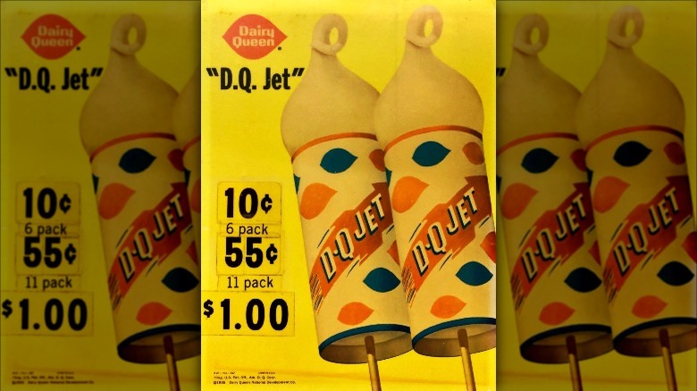 At the tail end of the 1950s, when the jet age gave way to the space age, Dairy Queen took flight with their own aircraft: The DQ Jet. Available for sale as far back as the summer of 1959, the push pop frozen treat came in vanilla, chocolate, and sometimes other special flavors.It was initially sold for 10 cents a pop, or in 6 packs for 55 cents or 11 for $1.