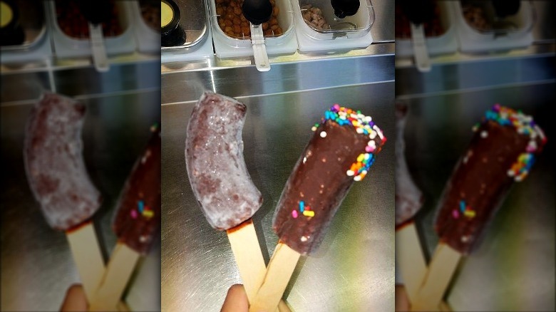 The Starkiss finally came around on its patriotic duty around 2003 and added red, white, and blue stripes to a version of the treat, naturally named the Stars & Stripes Starkiss. Little did Starkiss lovers know that this new flavor would eventually be the last flavor of Starkiss standing two decades later. While it does contains three flavors in one bar, cherry, watermelon, and blue raspberry, it hasn't stopped fans from petitioning for a return for a stand-alone cherry flavor, which last appeared on shelves in 2022. This frozen treat will also be missed.