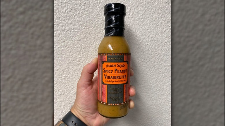 Beyond the typical salad dressings you find at most grocery stores and restaurants, such as Italian, Ranch, and Blue Cheese, there are other varieties that pack in some bold flavor and are just as versatile. Depending on what you are preparing for lunch or dinner, you may find yourself reaching for a more Asian-inspired dressing, particularly ones that use peanuts as its base. Peanut Sauce has an unmistakable flavor that pairs well with a variety of dishes, which is why Trader Joe's scores big marks with shoppers for its Asian Style Spicy Peanut Vinaigrette.
