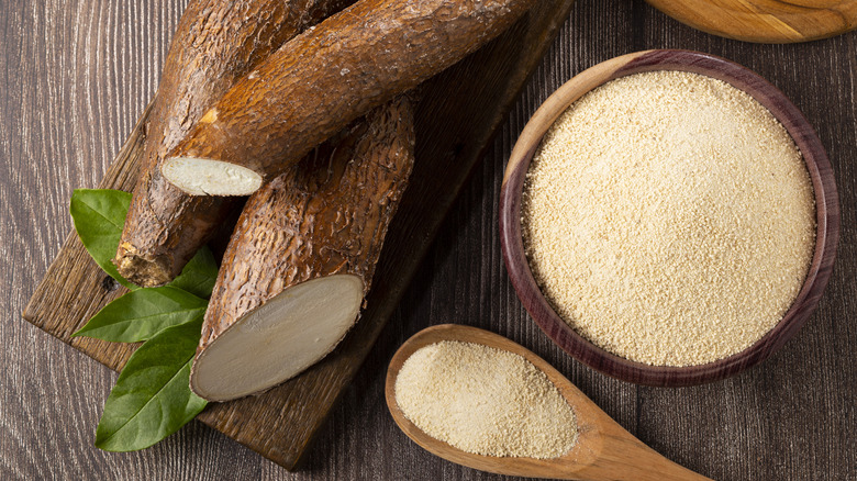 In its cooked and processed forms, there's nothing to worry about. However, raw cassava root contains cyanogenic glucosides, which can release a highly toxic chemical called hydrogen cyanide, according to a study published in Medical Toxicology. In Uganda, consumption of cassava flour led to a 2017 outbreak of cyanide poisoning, with 98 suspected cases and two deaths (per the Centers for Disease Control and Prevention).