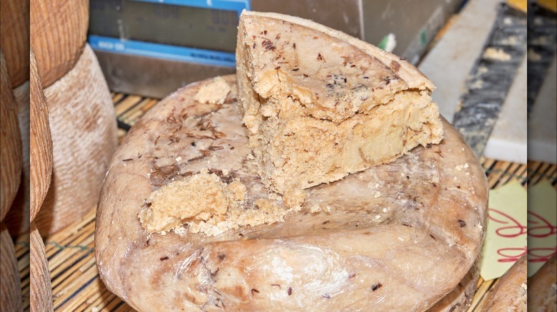 According to Britannica, the Guinness Book of World Records once deemed it the most dangerous cheese. The organization attributed the danger to the maggots, writing that they: "can survive stomach acid to pass through the intestine walls, causing vomiting, abdominal pain and bloody diarrhea." Luckily, it's banned in most countries, including its country of origin, Italy. But if you must try this rancid cheese, some local Sardinian producers may still sell it under the counter.