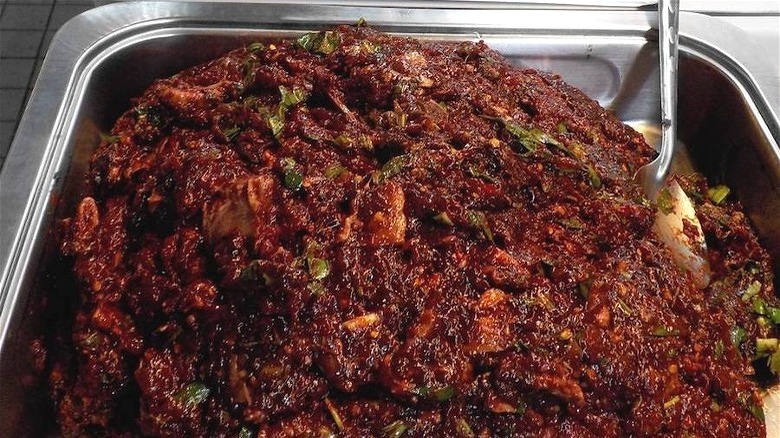 If you've tried the popular Thai dish larb, you're already somewhat familiar with this potentially dangerous dish. In the United States, this spiced minced meat is stir-fried just before serving to kill off any harmful pathogens. But some traditional chefs in northern Thailand skip the stir-fry, serving a more authentic meal of raw cow meat, bile, and blood. This type of meat can also be substituted for uncooked pork, fish, or duck.
