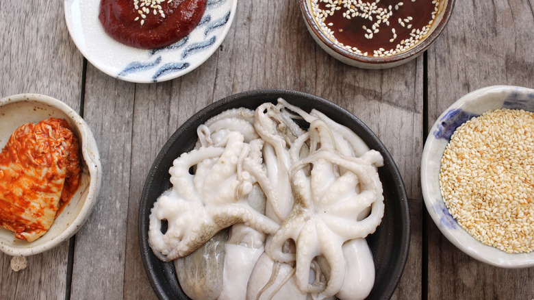 Imagine raw squid tentacles squirming around on your plate. Now imagine putting them straight into your mouth. That's precisely what san-nakji is, a Korean delicacy made from super fresh squid — so fresh, in fact, that the nerve endings are still firing. Many chefs chop off the tentacles and serve them immediately, and some particularly brave diners request the whole octopus raw.