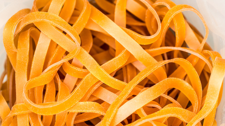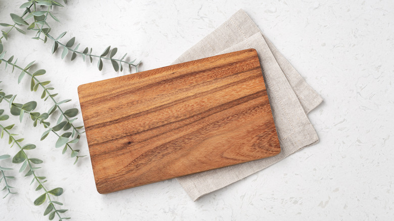 If you don't have a rubber band that fits around your cutting board, there are other ways to secure it to abide by kitchen safety. If it's time to replace your cutting board, consider opting for one that's non-slip. These boards typically have rubber ends or backsides to keep them in place during use without the need for anything else to secure them. If you don't mind spending a few extra dollars, there are also non-slip mats that can be placed under your existing plastic or wooden board. Finally, there's the trick of placing a wet towel under the cutting board. Opting for a standard kitchen towel rather than a paper one can provide even more grip and make this hack more sustainable.