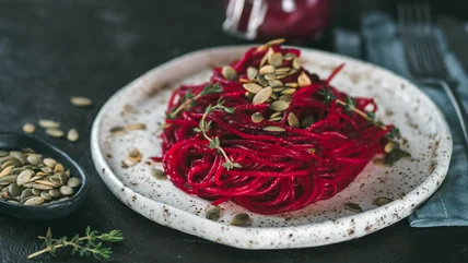 Beets, otherwise known as beetroot, are earthy root vegetables packed with manganese, potassium, fiber, and vitamins. Delicious and nutritious, beets are also an excellent natural food colorant. You may be familiar with using beets in cakes for a natural red hue, but have you ever considered using them to develop eye-popping purple pasta?