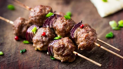 While your meatballs might be tasty as-is, a glaze is a gorgeous way to add texture and taste. With a classic barbeque sauce, don't slather sauce on grilled meat too soon. Brushing it on the skewers at the end is best, as this will heat the sauce without burning it. If you want to give your meatballs an Asian twist, then a honey and soy sauce glaze will add an umami depth. Drizzle the glaze onto the skewers and grill for a minute or two; this will caramelize the outside, making it even more sticky and delicious.