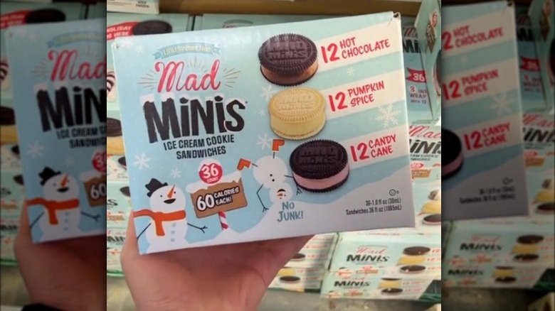 Now if it's a variety in flavor you're looking for, Mad Minis also sells other ice cream sandwiches beyond vanilla too. You can find these available in other iterations like mint, chocolate, blondie, and even black raspberry at some stores. Costco previously sold a special holiday pack of Mad Minis which included flavors like pumpkin spice, candy cane, and hot chocolate.