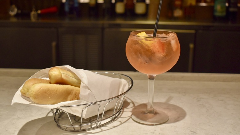 Rum aficionados will be keenly interested in Olive Garden's Italian rum punch, which takes a creatively tropical approach to an Italian-inspired cocktail. The drink comprises a bold blend of Bacardi Silver rum, amaretto, and strawberry-passion fruit purée, all of which come together for an undeniably tasty — not to mention strong — boozy treat.