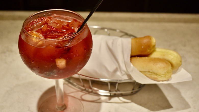 Olive Garden's chosen rum — Bacardi Silver — takes center stage in this drink's flavor profile, providing notes of almonds and lime that pair exceptionally well with the tropical strawberry-passion fruit purée it's mixed with. It is quite a pronounced flavor, however, meaning that anyone who is not especially fond of rum should probably opt for a different cocktail altogether. It is also one of the sweeter drinks on Olive Garden's cocktail list, which will certainly factor into some guests' drink choices. We also must give the drink huge creativity props for the seemingly-simple addition of amaretto, which lends the rum punch its delightfully Italian vibe and pairs it well with just about any dish on the menu. Priced at just $7.00, the Italian rum punch is an excellent value for money, offering guests a generous pour of alcohol, and a creative blend of tropical and Italian flavors that will have rum lovers begging for a second round.