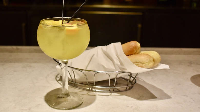 There's a reason that their Italian margarita is one of Olive Garden's most popular cocktails. First of all, it's smooth, sweet, tart, and refreshing like any good margarita should be. And second, it has an irresistible Italian spin that pairs well with just about any food option you could choose. Olive Garden describes the drink as "inspired by the flavors of Italy;" it's a blend of tequila and triple sec topped with a shot of amaretto, and it's available either frozen or on the rocks.