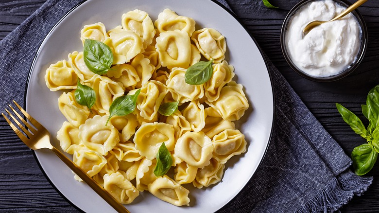 If you're in a rush but still want a tasty and filling meal, try air frying the tortelloni instead of boiling it. Recipe developer Patty Catalano recommends tossing the pasta with some sun-ripened tomatoes for a sweet and juicy burst of flavor. Top it off with some fresh basil pesto for a fragrant and herbaceous finish. Or, go for a classic and sprinkle some garlic butter over the pasta for a savory and comforting meal.