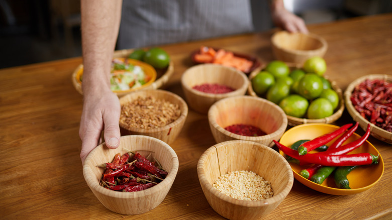 This trick will go a long way in terms of taste, and it doesn't require a lot of extra time or resources. Find a large bowl, and begin by tossing the frozen fish sticks in a bit of olive oil, avocado oil, or even vegetable oil. Make sure each fish stick is evenly coated for the seasonings to stick to the oil. There's no need to allow them to thaw before this step. Then comes the fun part, getting creative with the seasonings. For a classic mixture, sprinkle a hefty helping of dill and garlic powder. These flavors go great with fish and the crunchy batter. Another basic upgrade is to simply toss in some salt and pepper. For those days when you're in the mood for something bolder, try some Old Bay, adding a touch of smoky heat that will satisfy your seafood cravings. For even more heat, toss in red pepper flakes or paprika and crushed red pepper, and you've got a new favorite on your hands.