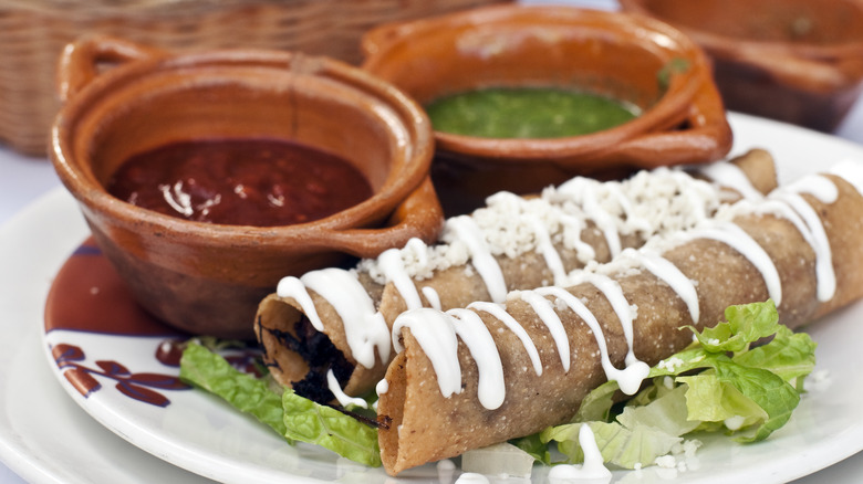 For those of us looking to be precise with our food categorizations, there is an even more pressing issue raised by the absence of corn tortillas as an option. Depending on who you ask, taquitos made with flour tortillas actually aren't considered taquitos at all — they are called flautas. This means that recipes calling for using flour tortillas are providing recipes for hot dog flautas rather than taquitos.