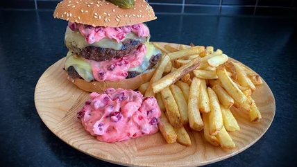 This unique burger concept is straightforward. It's reindeer meat — ground up like beef for a traditional hamburger — served on a soft bun such as brioche with onions, mushrooms, and gouda cheese. It is then topped with a jam made from the tangy-tart lingonberries familiar in Scandinavian cuisine.