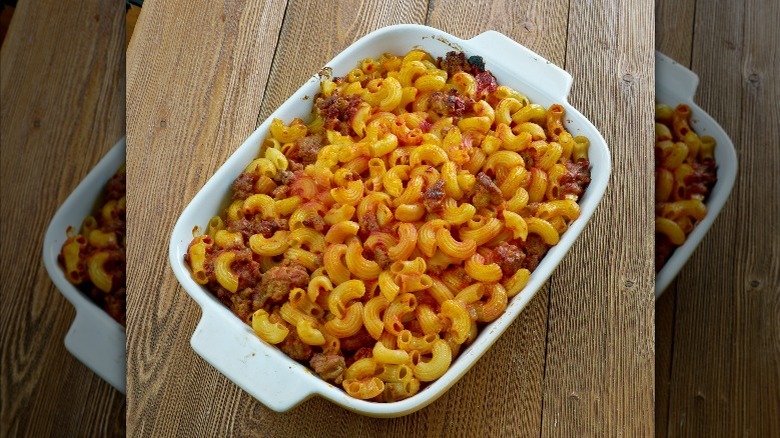 Even so, the name didn't appear again within the periodical until 1953. It emerged again in 1956 and then 1963, when the publication tried to get to the bottom of things. As the food editor of The Columbus Dispatch, Mary Pegg, concluded several decades ago: Not only is there no connection between this dish and the famed Marzetti family, but the name only really refers to the meal's two main components — noodles and ground beef (or pork, at one point in time, evidently).