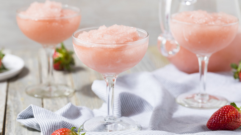 Generally reserved for fruity and citrusy drinks like margaritas and Daiquiris, frozen (also known as blended) cocktails use high-speed blades to crush and whip ice with the cocktail ingredients so everything is fully integrated. This creates a frosty texture that's liable to give you a brain freeze if you drink it too quickly. But there's nothing quite as refreshing and satisfying on a hot sunny day as an ice-cold frozen cocktail.
