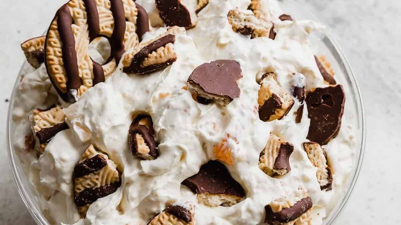 If you want to upgrade the ingredients, take a tip from Yeh, who told Taste of Home, "I love to make all of the elements from scratch." You make fudge-striped shortbread cookies at home and mix them into a homemade Cool Whip and vanilla pudding mix. Or, you can keep things simple and stick to the basic recipe. Either way, Yeh offered another piece of advice for serving the classic version: "Don't let it touch your hot dish and just try it. You will like it."