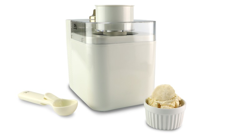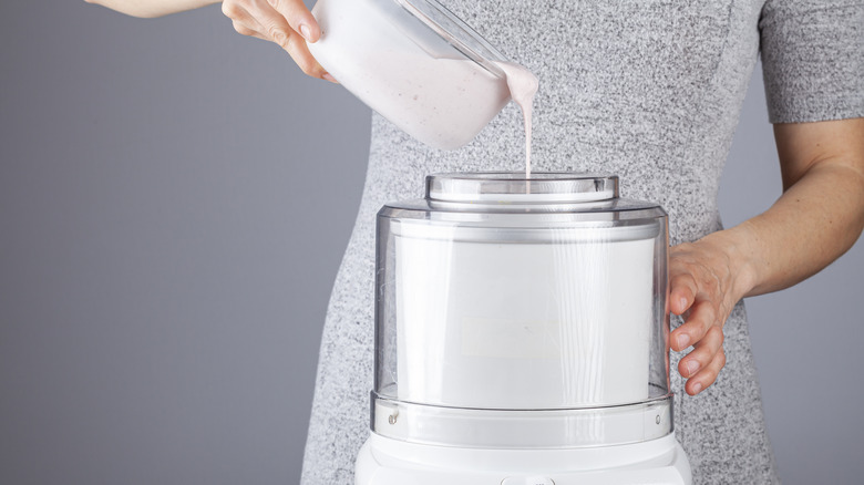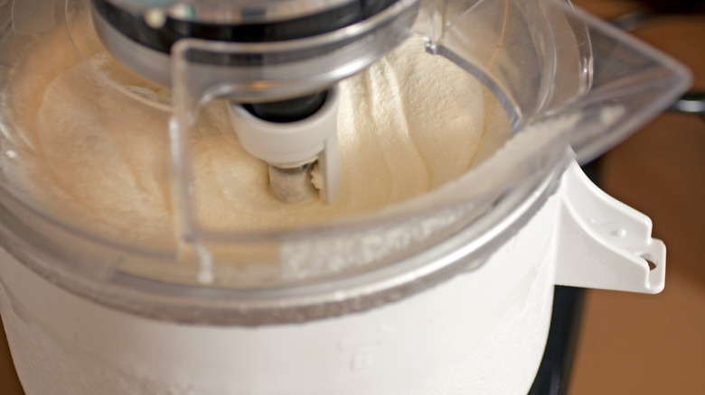 No matter what kind of ice cream maker you have, turn the appliance on before you do anything with the ice cream base. Above all, you don't want to pour the mixture in while the machine is off because it starts sticking to the sides. This happens almost instantaneously because the ice cream and the gadget's interior are cold — which is what you want. But unfortunately, clumps form if you're not careful.