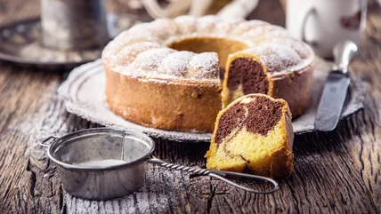 Served with a thick layer of powdered sugar on top, it most typically shows up today in a plain vanilla flavor, though according to Bruce Zipes and the Bruce's Bakery Cookbook, it originally had a thick chocolate swirl running through it too.