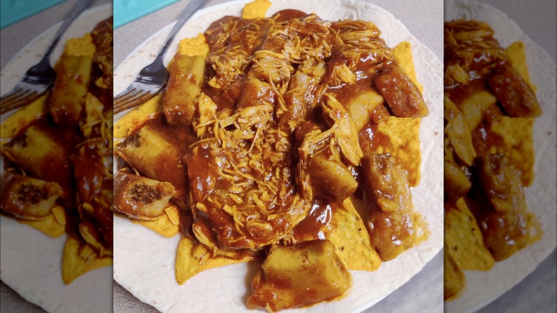 As it turns out, there's a right way to chow down on tamales. If you go with the canned version, you'll still have to do some prep work. First, open the can and transfer its contents to a plate. Remove the waxy paper around the dough (if applicable) and heat them on the stovetop, in the oven, or in the microwave. If you prefer to bake them, sprinkle some shredded cheese on top to enhance their flavor. Cook them at 350 degrees Fahrenheit for about 30 minutes.