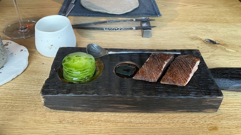 Not everyone is a fan of extended-tasting menus. In fact, many notable critics, including The New York Times' Pete Wells and The Observer's Jay Rayner, have dismissed them as exhausting marathons. Yet, Gareth Ward dives headfirst into the immersive format, further deepening the experience through the addition of music curated by a live DJ. Other means of sensory immersion are also employed such as filling the restaurant with birch smoke.