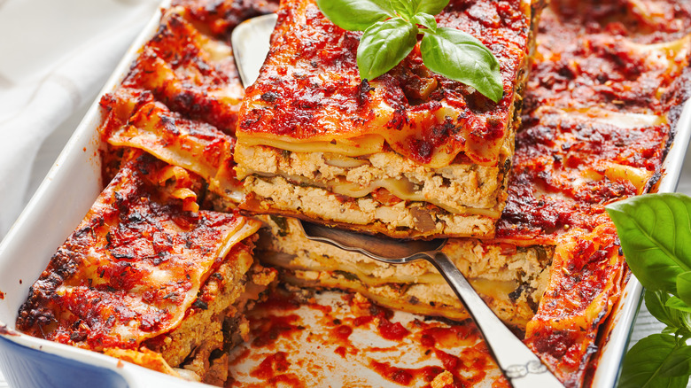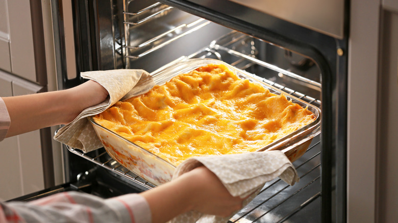 So you made a delicious classic lasagna, it turned out great, and you have plenty of leftovers. Then, the next day you go to heat up your tasty creation in the microwave, and it turns into a mess. It's hot on the outside and ice cold on the inside. Plus, it's somehow both dry and soggy at the same time. Who knew that was possible? This exact scenario is why it's best to avoid reheating lasagna in the microwave entirely. In fact, the best way to reheat lasagna for an evenly heated and crispy-top experience is to use the oven.